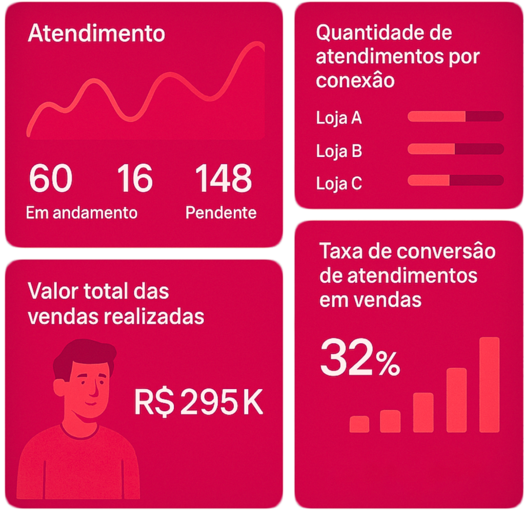Acompanhe métricas essenciais como tempo de resposta, conversões e engajamento dos clientes, garantindo um atendimento cada vez mais eficiente.
